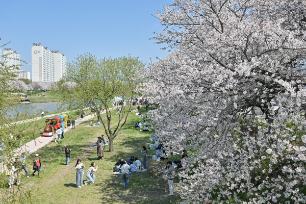 (서울일보/박상익 기자) 광주 서구 주민들이 6일 서구 광주천변 일원에서 ‘봄을 여는 소리, 희망의 울림으로’ 주제로 열린 힐링음악회 ‘새봄’에서 벚꽃이 만개한 광주천변을 거닐며 힐링하고 있다.